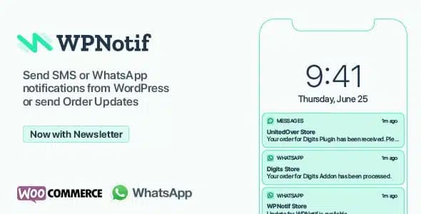 Wpnotif lets you send notifications using SMS or WhatsApp to your customers from your WordPress site. The plugin is also fully compatible with WooCommerce and you can setup automatic notification triggers for your customers whenever they create a new order or whenever the status of that order is changed. Site admins including, store owners, editors etc can also set up messages or WhatsApp notifications for themselves.
